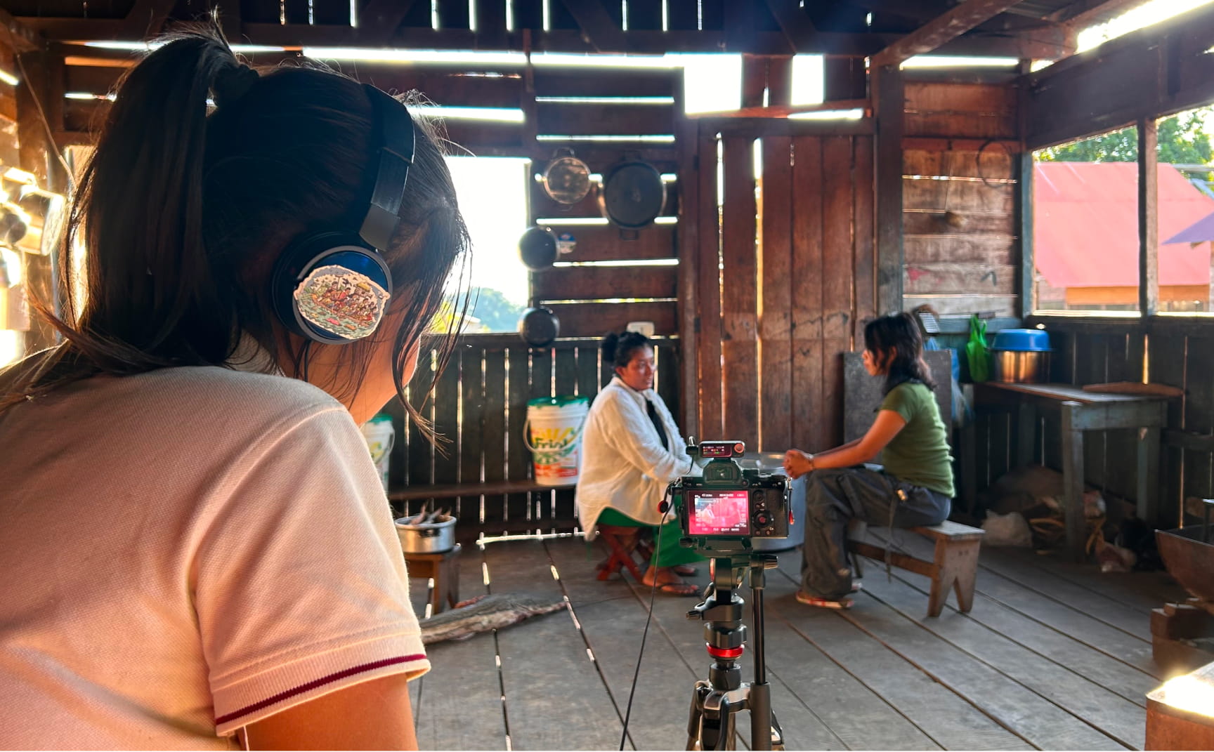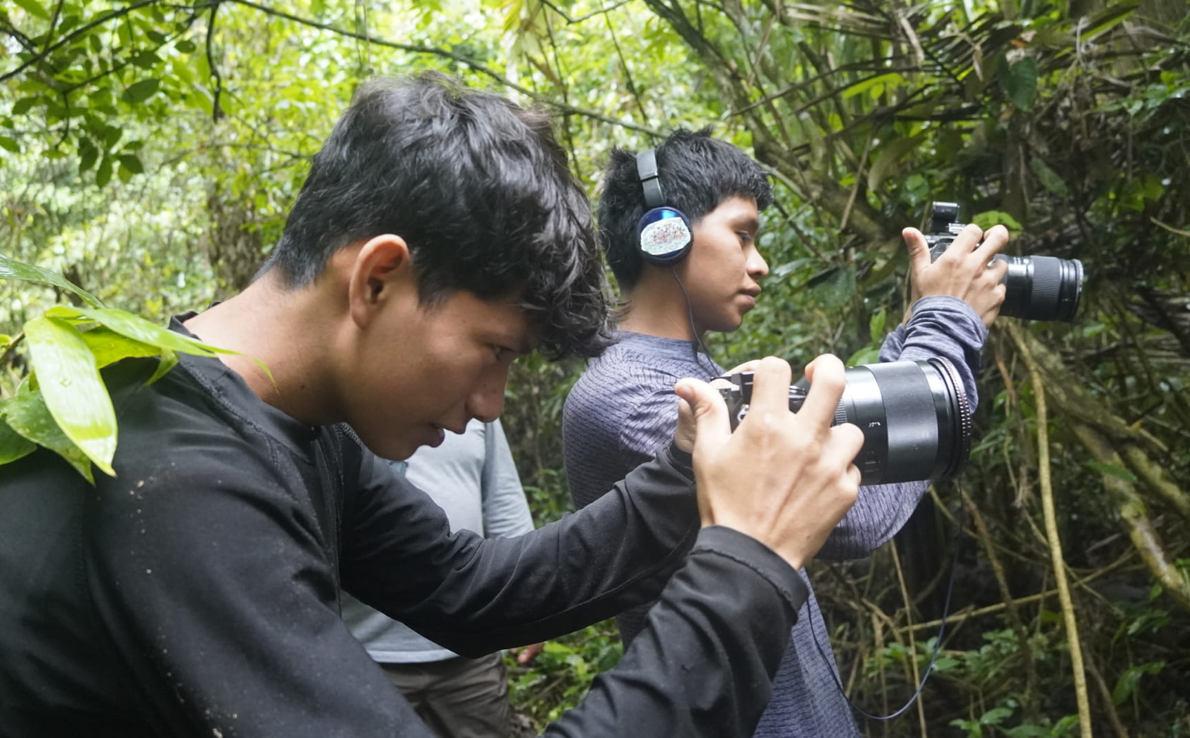 Lo más difícil llegó en diciembre: grabar a nuestros abuelos compartiendo sus saberes. Cuatro días cargando equipos, convenciendo a tíos y abuelas de dejarse filmar. Carlitos trepó por huito y se llenó de hormigas. Patrick se hizo el enfermo para probar los preparados. Wata persiguió guacamayos con el dron. Escuchamos historias que ni nosotros conocíamos, y eso cambió algo. He aquí lo que salió.